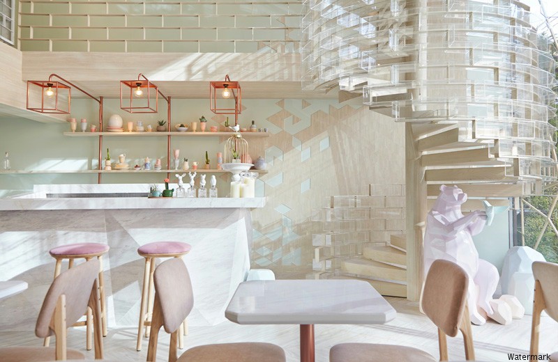 店铺设计理念源自放大多倍的砂糖颗粒形态,采用每颗砂糖的多样性形状,设计成艺术性装置展示在店内,整个空间多运用低饱和度色系,洋溢着清新浪漫的气息。同时运用金铜色钢材质,比如天花上悬挂...查看详情 -