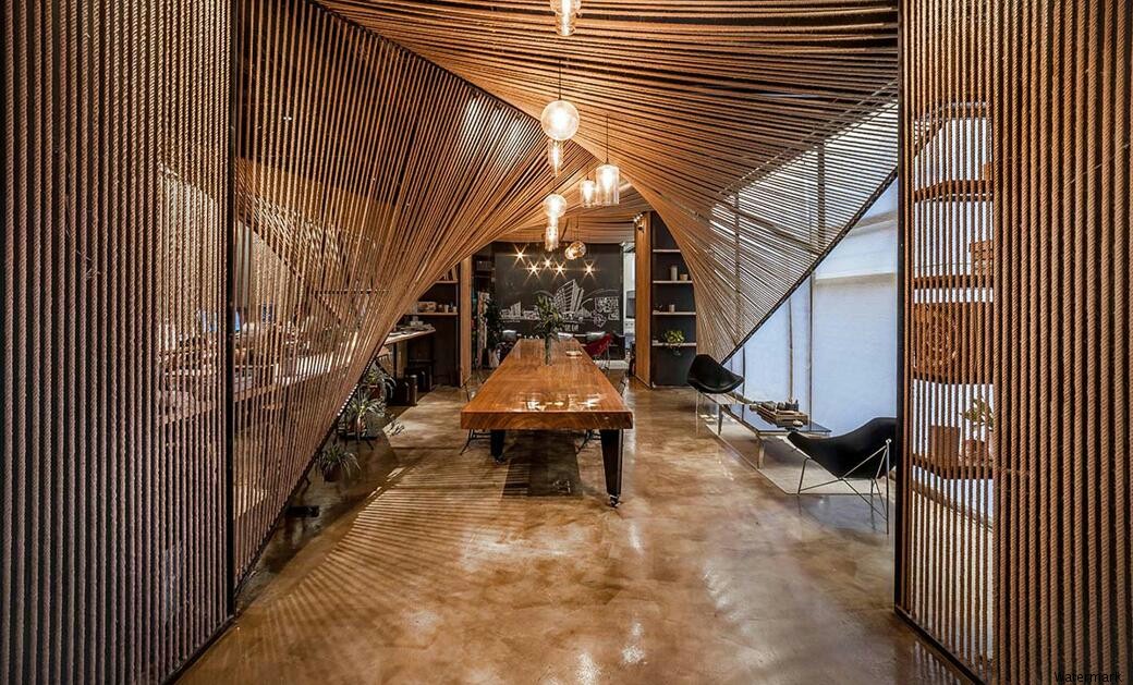 商业设计主体办公空间为开放式分享空间,并以两个回字形流线为结构,实现了空间布局的流动性。室内材料以自然生态、可回收利用的麻绳、槽钢、实木为主体,既能节省成本又能塑造低碳环保的办公场...查看详情 -