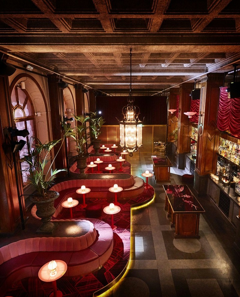 大胆的设计才能让人的眼前一亮。打破传统酒吧的风格,注入红色色彩,让空间变得大胆起来。古典与现代相结合,让这个酒吧变得不同寻常。超长定制的沙发突显了空间延续性,艺术品及壁画既形成了酒吧的独有符号,也与空间形成了协调。大红色的主色调带来别样风情。