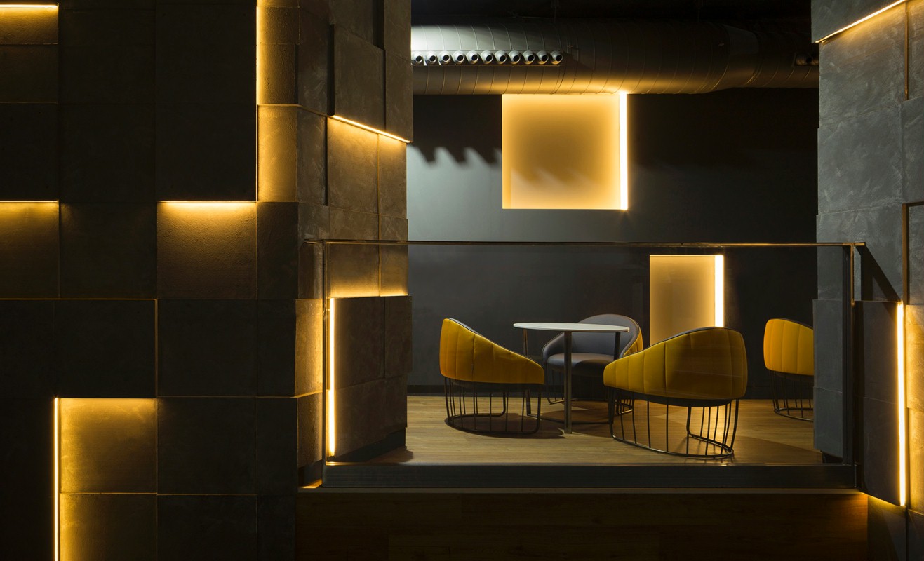 极具美感炫酷的俱乐部。设计师为原本规则的四边形场地赋予了新的物质性以及丰富的光影,从而变得更加精致有趣。室内采用的家具线条简洁且符合人体工程学的家具在提供舒适性的同时与空间内的几何元素形成精准的搭配。整个方案可谓是技术与设计的完美结合。灯光的设计使空间的美感与功能性得到了平衡,在这样的环境下,顾客能得到更好的体验。